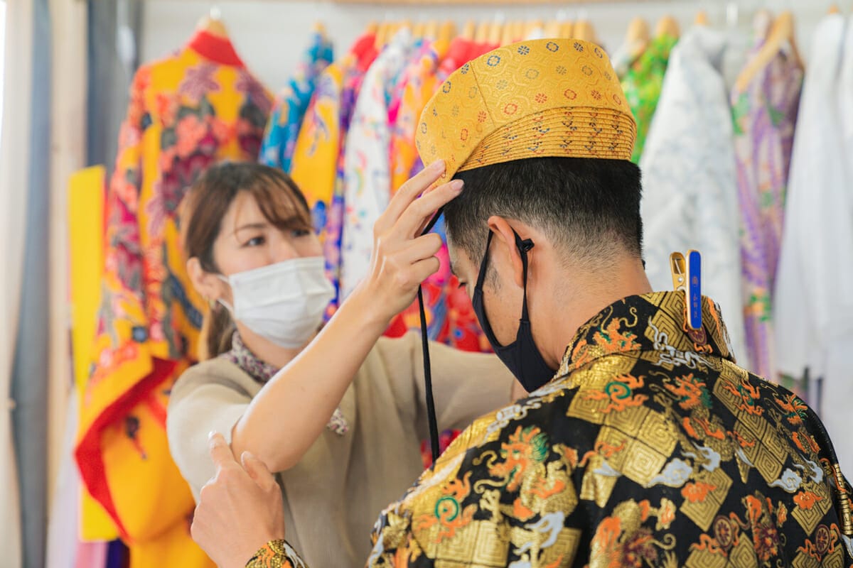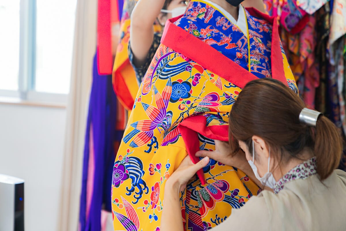 沖縄の伝統衣装、「琉装(りゅうそう)」。