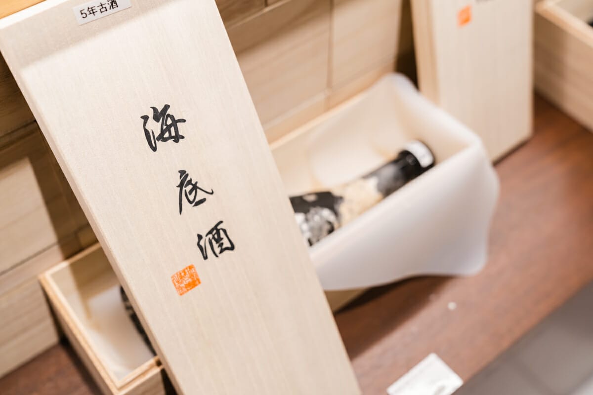 海底で1年以上寝かせ熟成させた泡盛です。瓶の周りにはフジツボやサンゴが付着し、ラベルも色褪せたりしています。他にはない、1本1本違うオリジナルです。