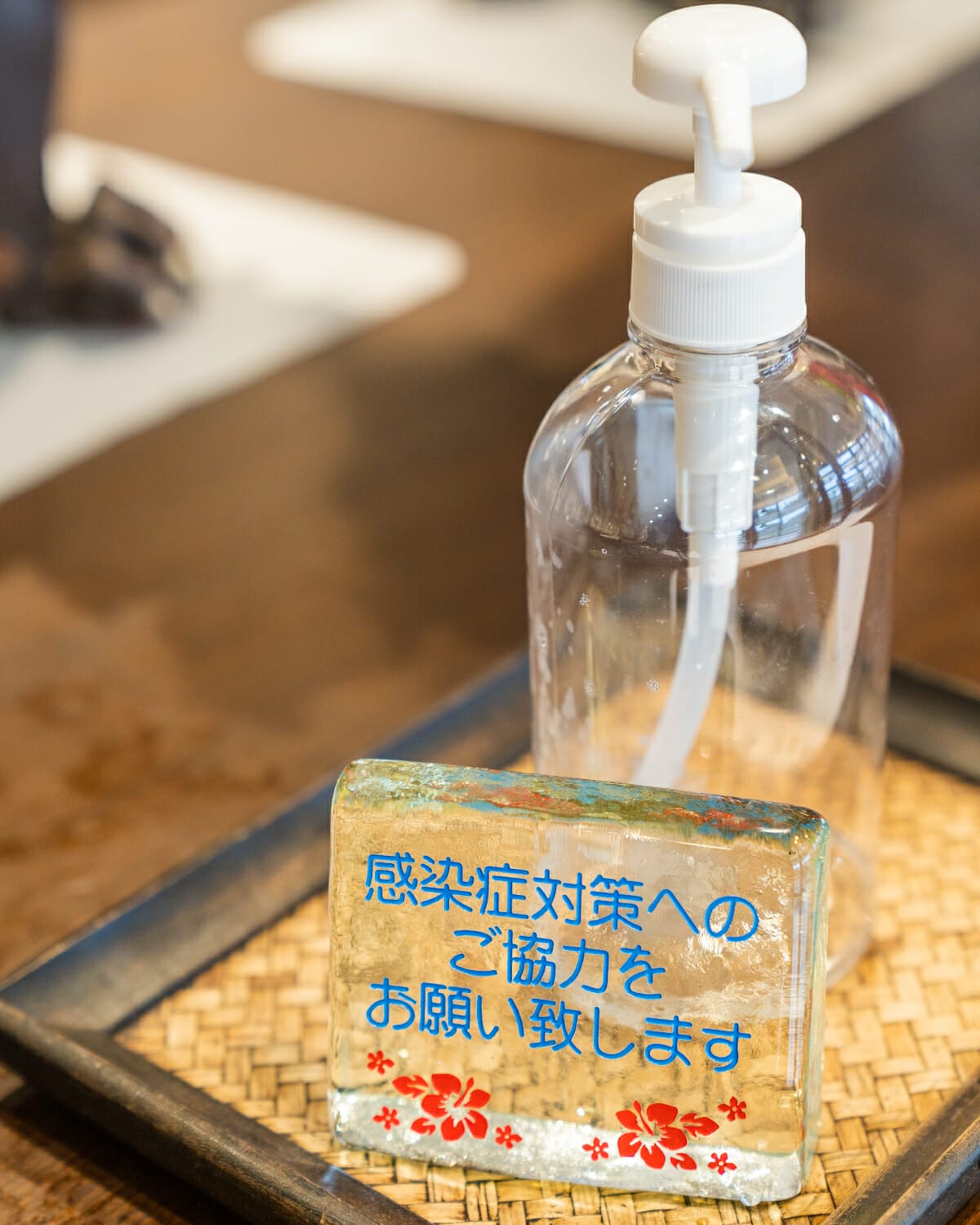 入り口では手指消毒用のアルコールが用意されており、感染症への対策もしっかりと考えられています。