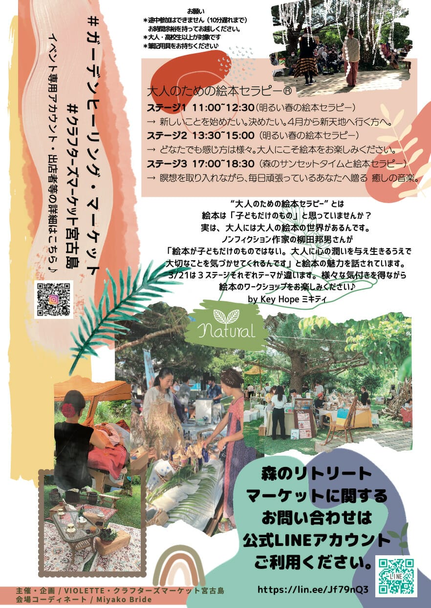 クラフターズマーケット宮古島は、3月21日(火)に”自分に向き合う旅に森へ出かけよう”をテーマに、春の森のプチ・リトリート開を開催する。