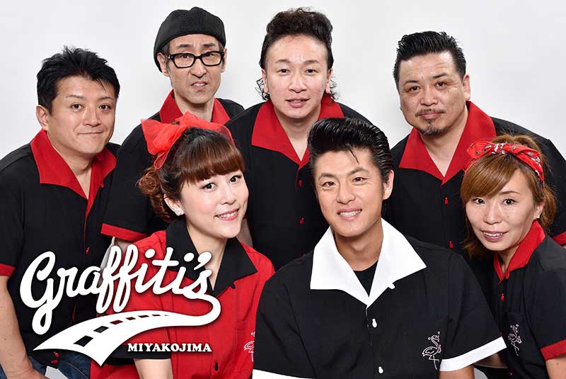 『ファンキーフラミンゴ』は50年代や60年代の“あの古き良きアメリカ“へとタイムスリップさせてくれるアメリカンスタイルのオールディーズライブ&ダイニングバー。ネオン輝く店内にはいつの時もリスペクトされている世界や日本のアーティスト写真が勢揃い。クールでノスタルジックなサウンドホールで毎夜熱い演奏を繰り広げてくれるのはCONNY’S COMPANYがプロデュースする「MIYAKOJIMAグラフィティーズ」。「MIYAKOJIMAグラフィティーズ」は『ファンキーフラミンゴ』でしか出会うことが出来ないアメリカンスピリットを体現するバンド。50年代や60年代のオールディーズをメインに、迫力ある生演奏でお届けするという。今も愛され続ける名曲の数々からスタンダードナンバーまで、「MIYAKOJIMAグラフィティーズ」は南国のナイトライフをエネルギッシュに彩ってくれることになりそうだ。