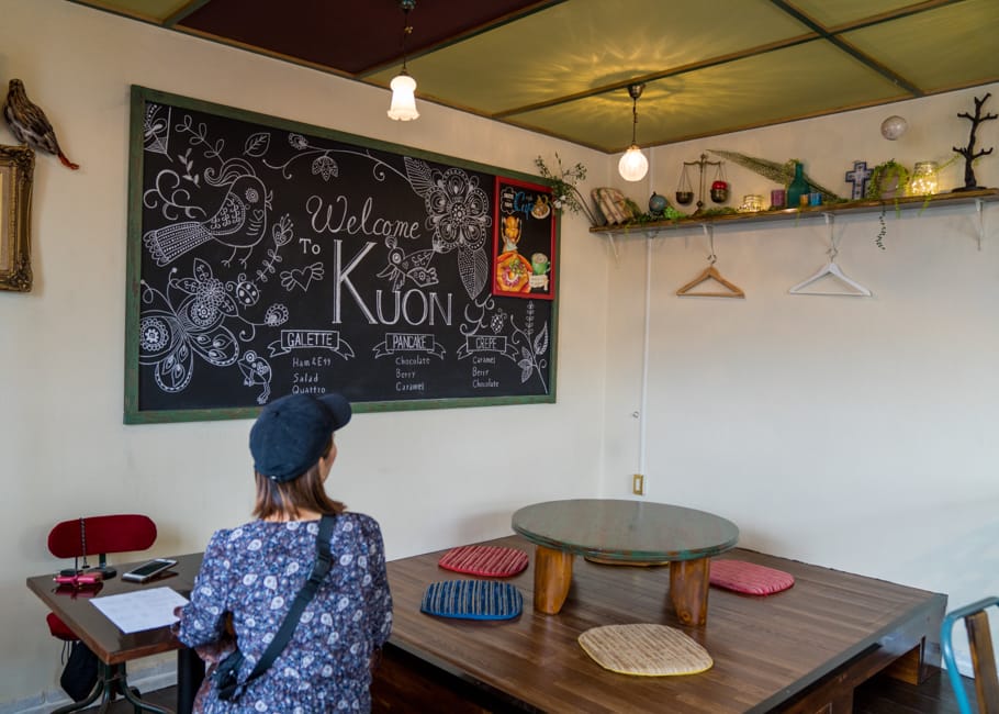 野菜もたくさん摂取出来る上、美容にも健康にも良い「ガレット」。KUONでは色彩にこだわった盛り付けもとても華やかで目でも楽しめる。 その他クレープやパンケーキの種類も豊富な為、ランチだけでなくカフェタイムにも楽しめそうだ。