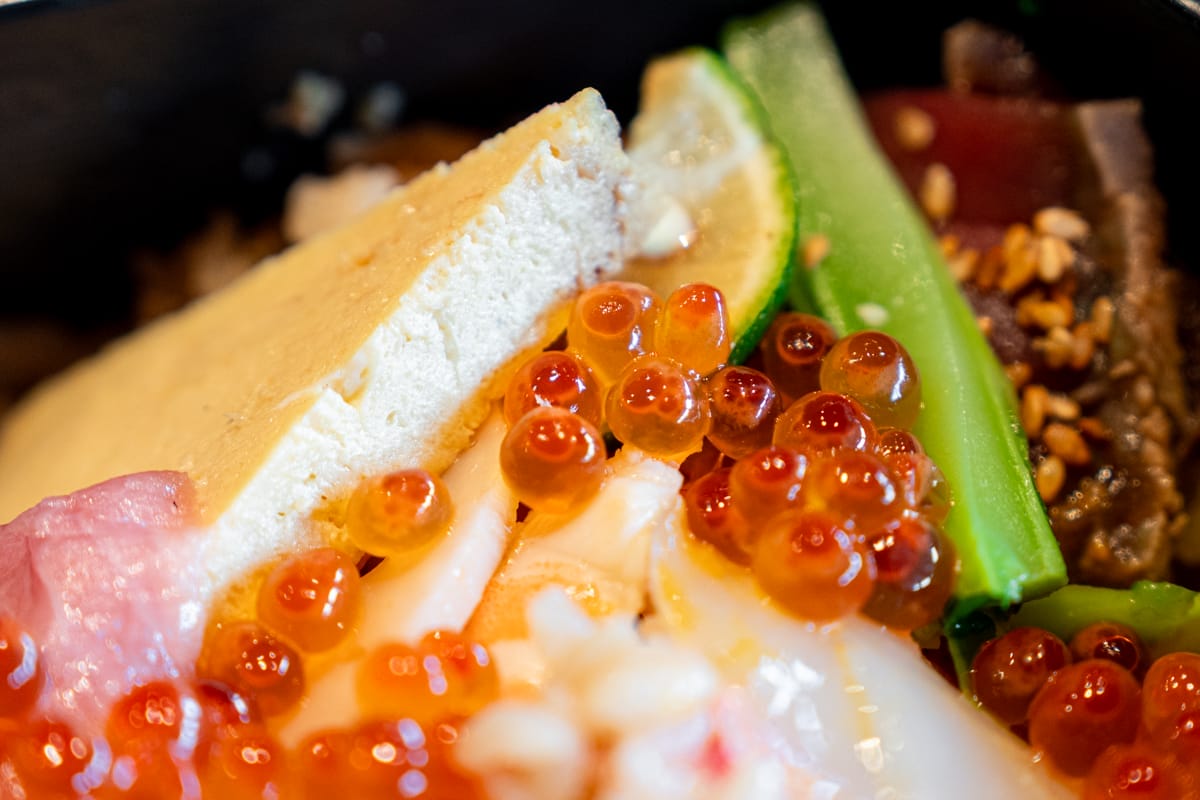 高級ちらし寿司の美しい具材たちが織りなす彩りに、イクラがたっぷりとかかった瞬間、キラキラと輝き出すんです。