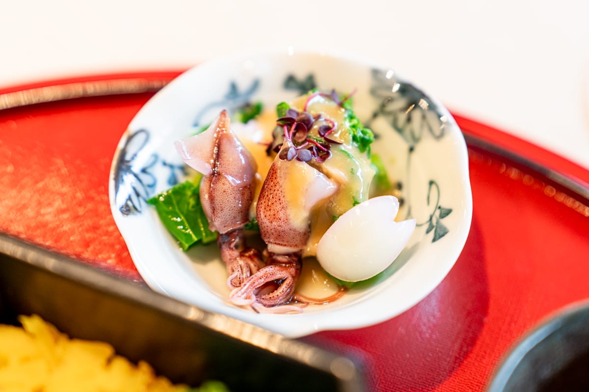 本日の小鉢はホタルイカ〜!菜の花も入っています。