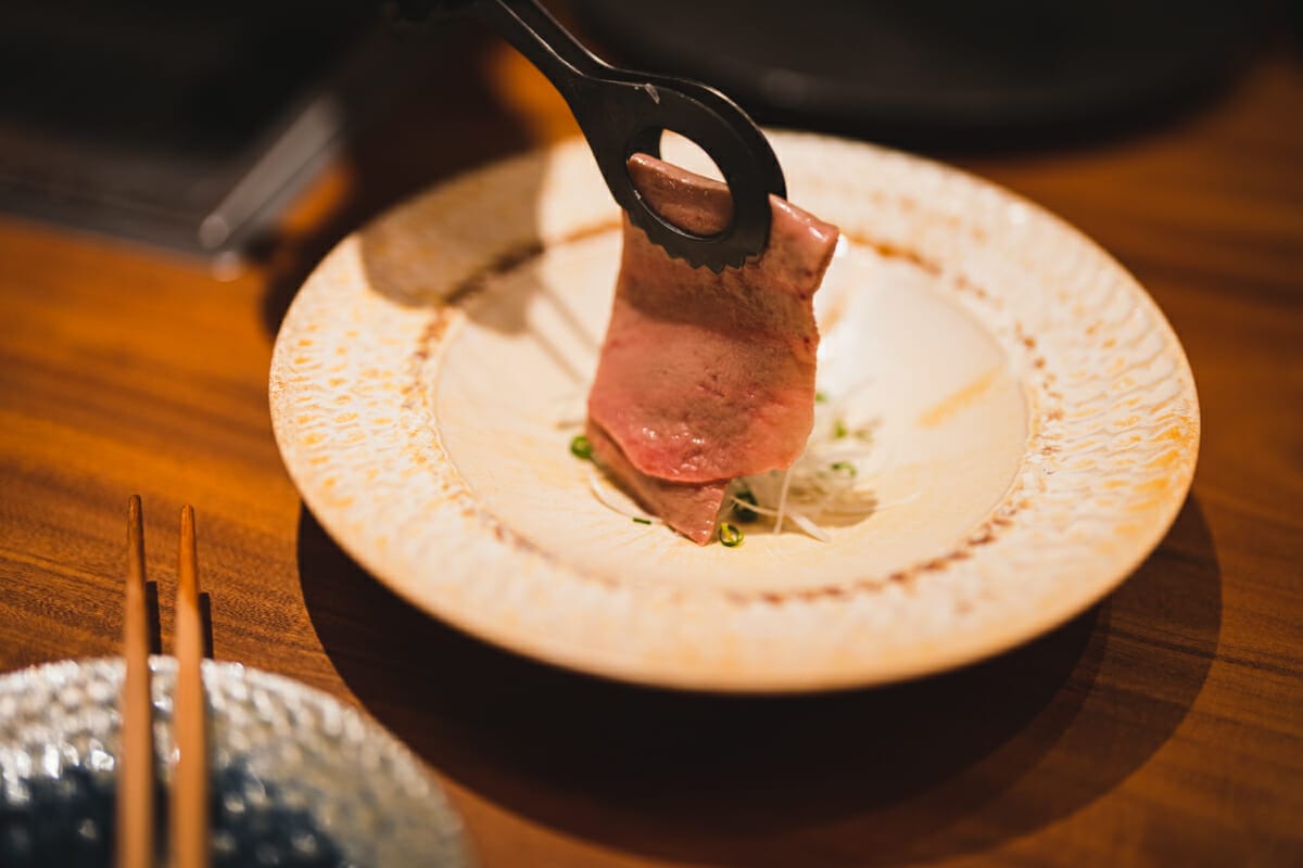 目の前でスタッフの方がタンをサラッと焼き、