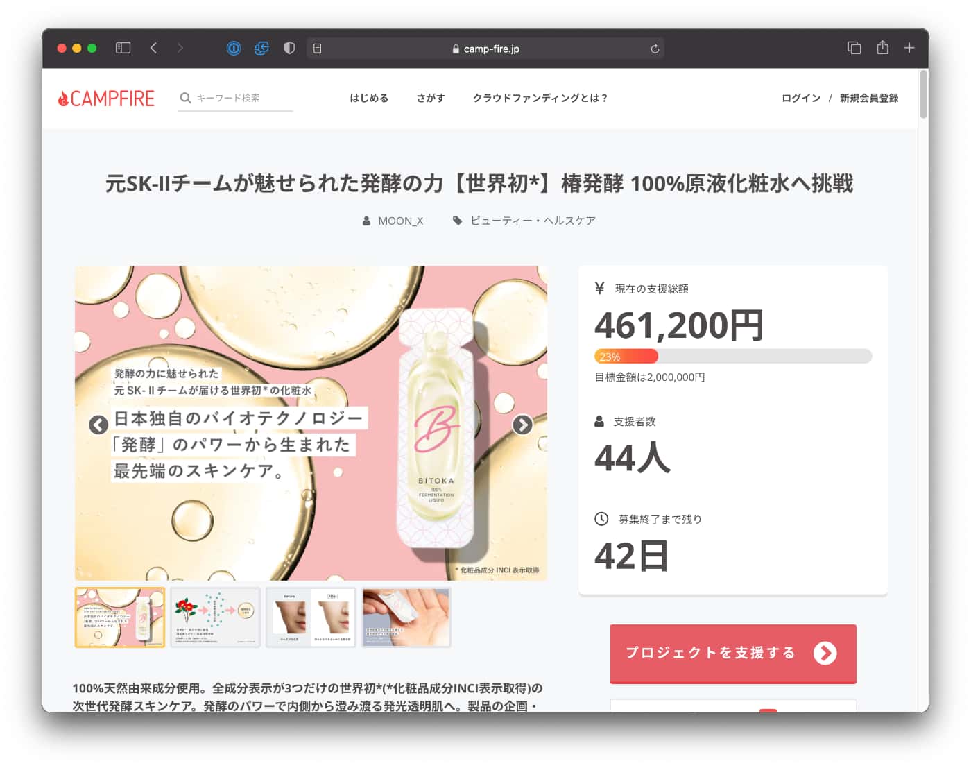 MOON-X株式会社(東京都目黒区)は、スキンケアブランド『BITOKA』から宮古島の椿の花びらなどを原料にした「BITOKA 発酵原液化粧水」のクラウドファンディングを5月14日より開始した。