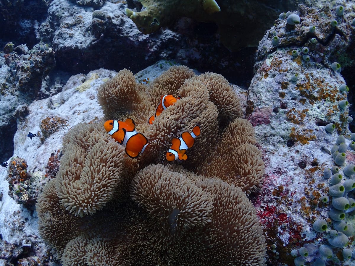 八重干瀬はとても広くて、その中でもその日にあったベストポイントへ案内してくれます。ここでは イシサンゴ、クシハダミドリイシ、リュウキュウキッカサンゴ、ハマサンゴ、コモンシコロサンゴ、ユビエダサンゴ、などが見られます。