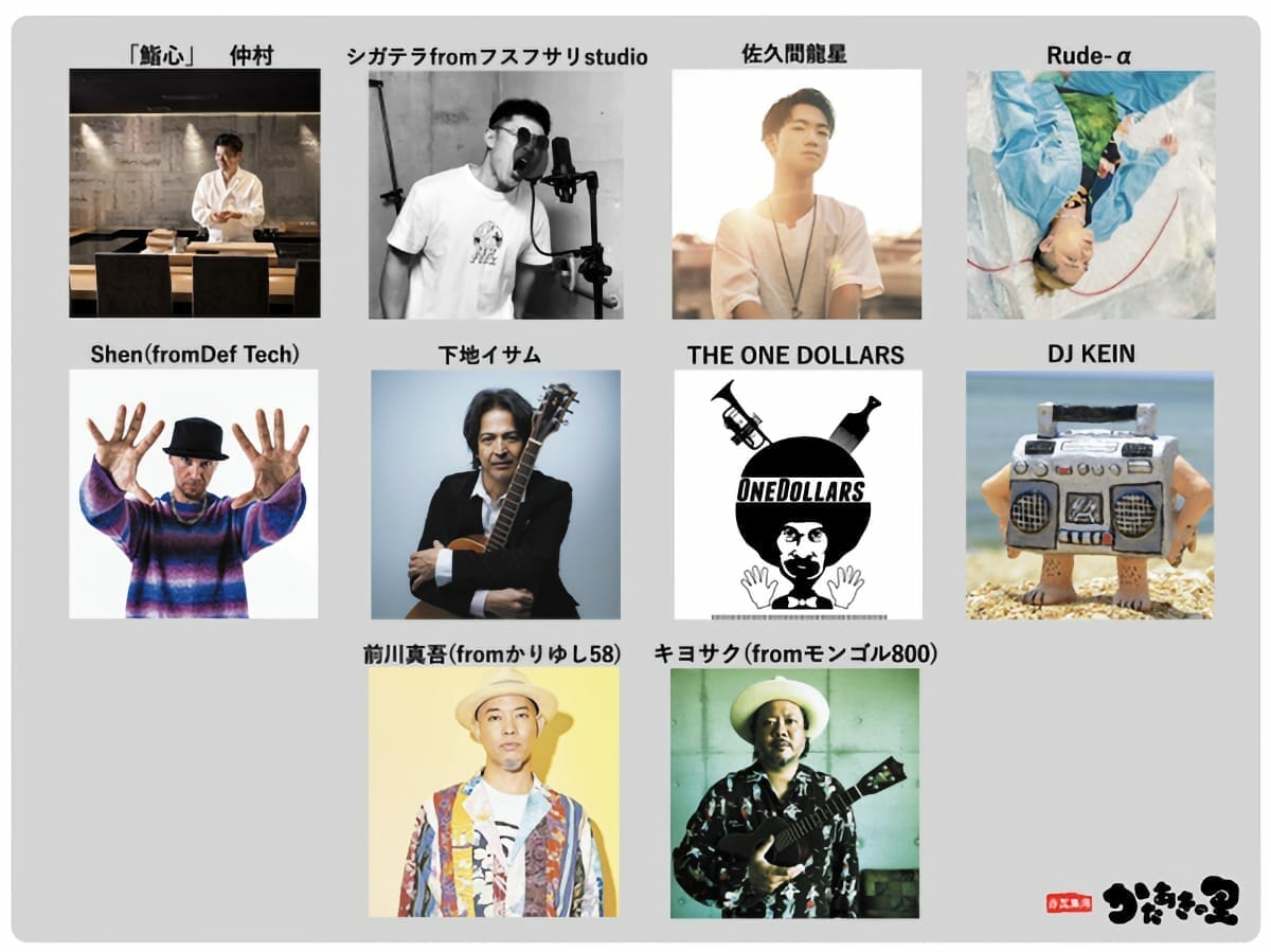 モンゴル800のキヨサク、かりゆし58の前川真吾、DefTechのShen、Rude-αなど、豪華アーティストが宮古島のリゾートホテル「かたあきの里」に集結する。