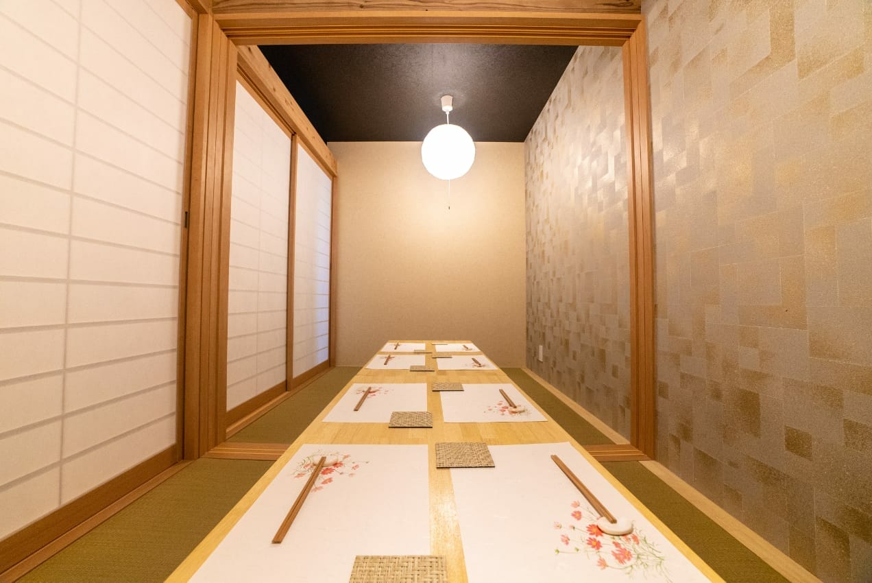 4名様席の個室を2卓ご用意。最大10名様までのプライベートな個室空間を演出致します。