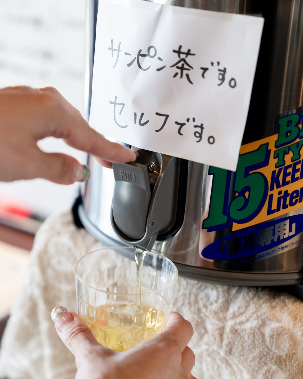 セルフサービスの冷たいさんぴん茶をいただきま〜す。